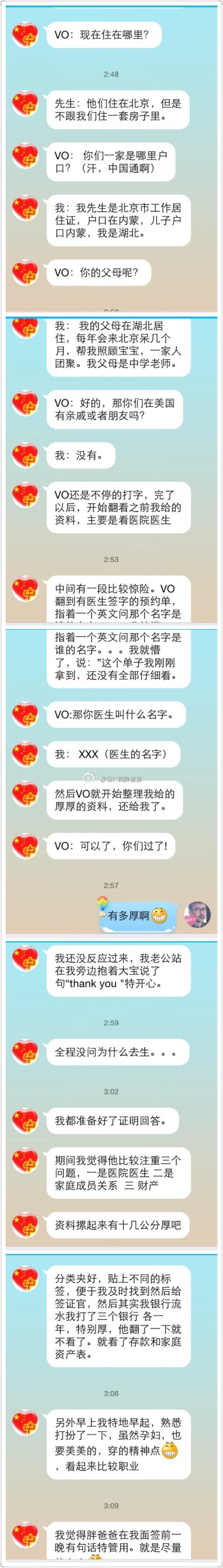 孕妈:签证官还是不停地打字,完了之后,开始翻看之前我给的资料,主要是看医生医院。