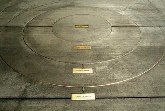 天文台前的柱子上刻着四位著名天文学家,下方还有个日晷。正对着天文台的那位是伽利略。