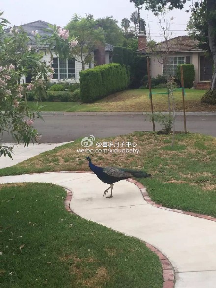 【孔雀来到家门口】喜多大酒店中来自天津的赴美生子孕妈分享了几张门口孔雀的照片,在国内的时候只有在动物园才能看到孔雀,而在美国洛杉矶,它们居然还会无所顾忌的走到你家门口,真的是人与动物和谐相处哦。