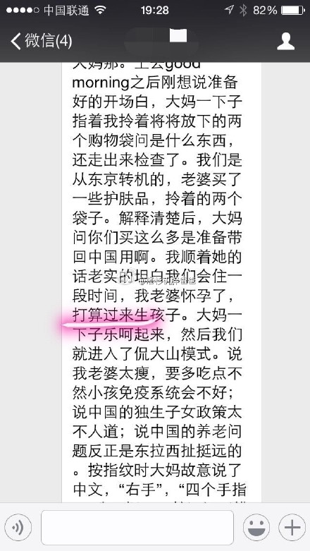 恭喜来自江苏苏州客人顺利潜入美国。东京机场转机买了很多化妆品被美国海关问起为什么买这么多的时候顺势说打算去美国生孩子在美国住一阵子。赴美生子本身不违法,注意操作过程避免欺诈行为触犯法律。