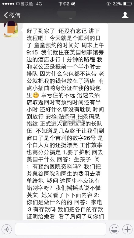 正是进入面签区域的长队伍,二人排到一个白人女签证官,工作效率杠杠的,要了护照便开始发问,去美国干什么;有预约医院资料吗?是做什么(工作)的?有存款吗?长长的银行流水也要准备好哦,生子预算也要做好。面签官更愿意看到一个准备充分的赴美 生子人,这让他们放心让孕妈妈进入美国,而不会占用美国的福利。这位来自河南信阳的高龄产妇一家,顺利地拿到了通过的黄单,还很好心地提醒这个家庭,过海关的时候也要带上生子预算噢。这样一个善解人意又办事公允的签证官,正是众多赴美生子诚实签家庭所遇到的。大家对诚实签还有什么担忧呢?请放心做好准备去美国生孩子吧。