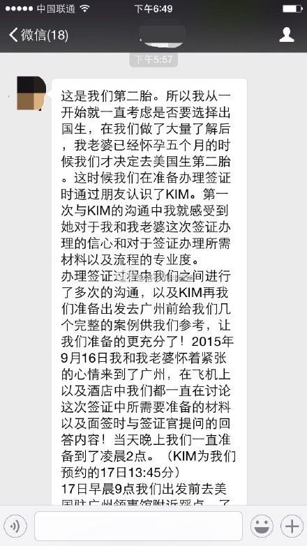 许多人会对如何选择专业靠谱的月子中心感到无从下手,但就从第一次沟通,这位福建莆田的客人,在与Kim的沟通过程中感受到成功办理签证的信心以及对方办理签证的专业。如果说姐姐的成功经历是他们选择赴美生子的一个契机,那么我们工作人员业务的专业度和负责任的态度则是赴美生子成功实现的保证。