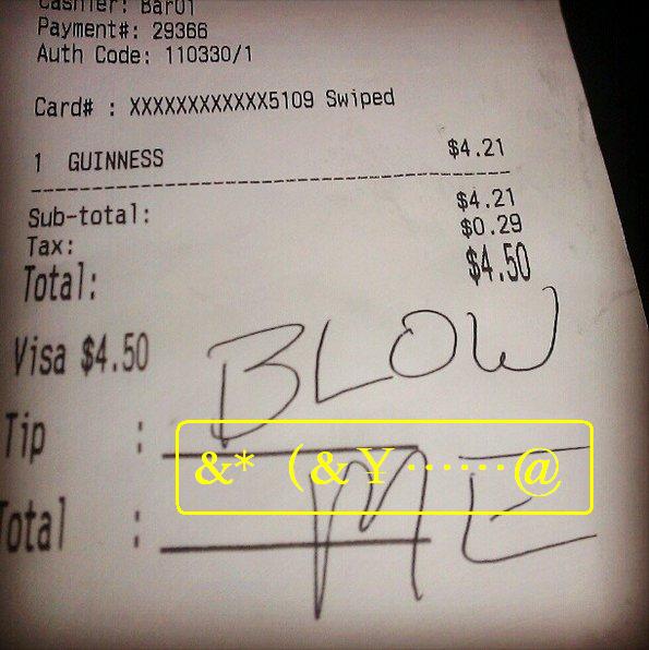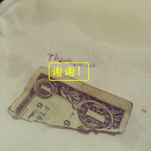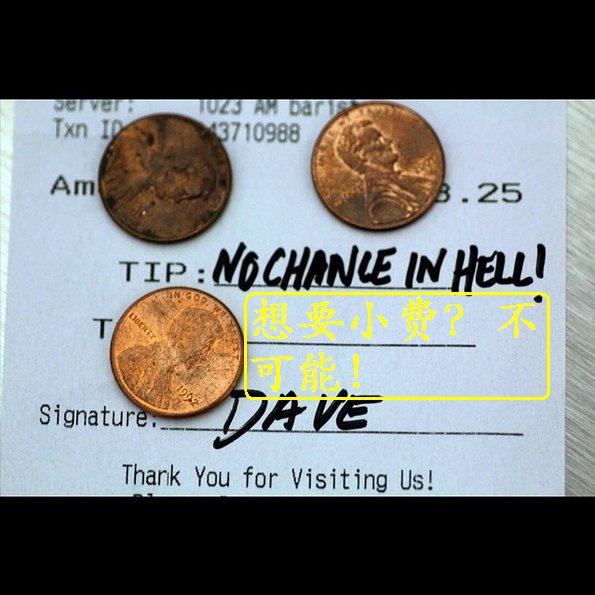 3. 给小费时,在纸币上写上侮辱性语言
