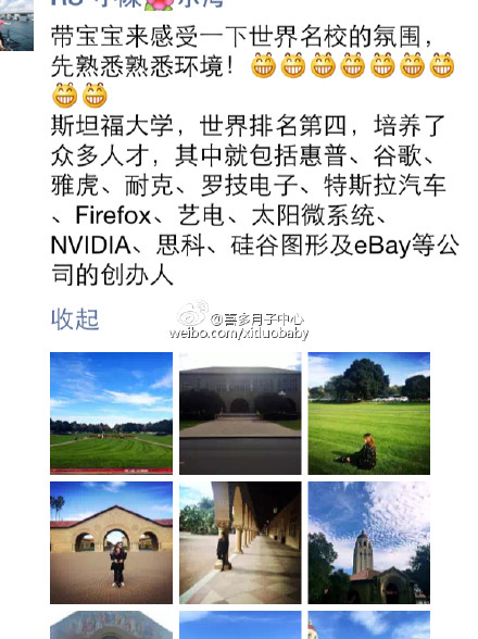 【美国名校之旅】洛杉矶喜多月子中心来自江苏南京的赴美生子客人夫妇最近开启了“高校之行”。斯坦福大学,世界排名第四,人才辈出,教育顶尖,典型的实力派,让肚里的宝宝提前感受一下这里的环境,树立个理想,说不定我们以后就是这里的学生呢。