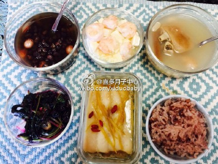 清蒸鱼片,炒红苋菜,虾仁豆腐蛋,红豆莲子汤,花生药膳猪脚汤,红米饭。分享美国喜多月子中心的月子餐菜肴实拍,现在洛杉矶的气温渐渐转凉,虽然没有冬天的寒冷,但是赴美生子的孕妈们也要多加衣服了哦,开心地等待美宝的诞生。