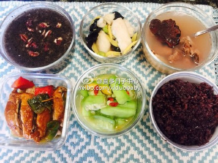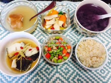 白果油焖丝瓜,照烧鸡,醋溜鱼片,核桃芝麻糯米粥,当归首乌排骨汤. 香煎鲑鱼,苹果鸡丁,奶香花椰菜,红豆莲子甜汤,虫草当归乌鸡汤,杏仁饭。分享美国洛杉矶喜多月子中心的赴美产子营养月子餐实拍,有图有真相,想不想品尝一下呢。
