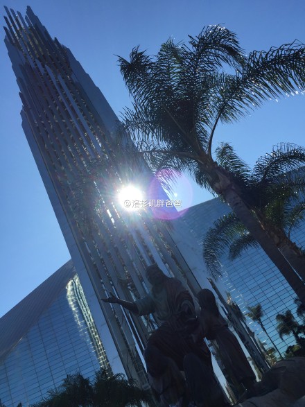【赴美生子参观水晶大教堂】教堂位于洛杉矶橙县的Garden Grove。1968年开始兴建,历时12年,耗资2000多万美元。著名的建筑师菲利普・约翰逊与他的伙伴设计,教堂长122m,宽61m,高36m,超过著名的巴黎圣母院。外壳银色玻璃,晶莹透亮,由此得名。地上发现有块中文石牌,应该是来自北京的捐赠者。