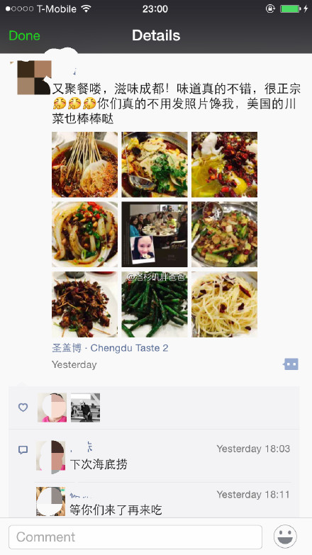 【赴美生子之美国地道川菜】周末组织了Corona别墅的客人在滋味成都圣盖博分店聚餐,还是一致的好评,连来自重庆的妈妈也表示味道正宗[good]。@滋味成都老徐 把分店从洛杉矶开到了拉斯维加斯,赌城的小伙伴们也能吃到了