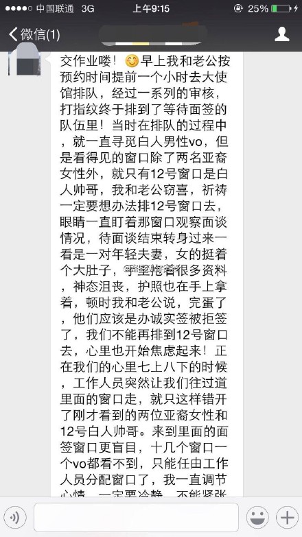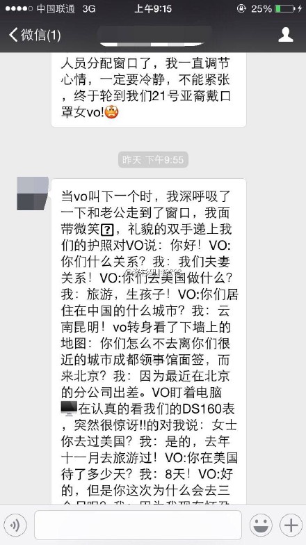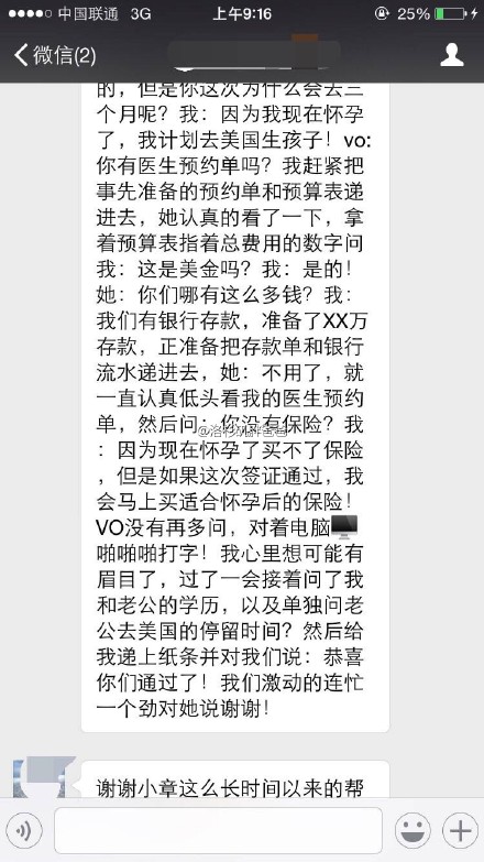 【已有美国签证又重新办理赴美生子诚实签】云南曲靖人,第一胎,刚怀孕,某地产公司人事部经理,北京某大学金融证券学院毕业,先生是当地公务员,他们都去过美国已经有旅游签证。夫妻两人在北京美领馆重新面签,诚实告知签证官他们的赴美生子真实目的,恭喜!