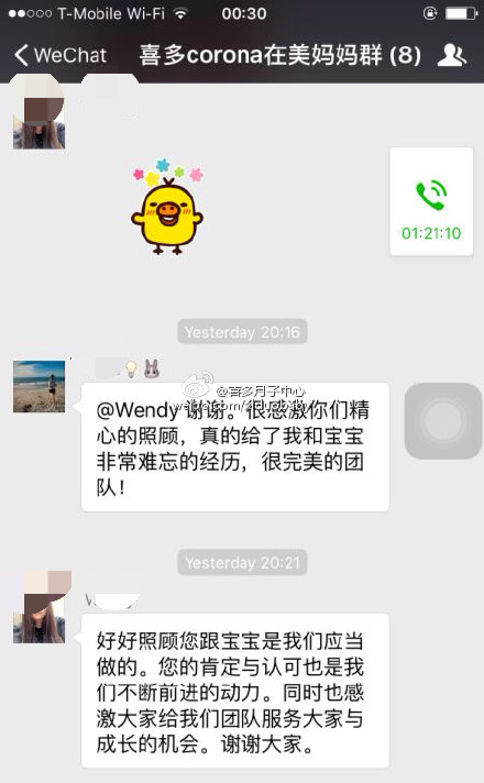 喜多月子中心corona豪宅的上海和泉州赴美生子客人为宝宝在美国庆祝满月啦!两个美宝都是12月29日出生的,上海妈妈34周就生了,工作人员和月嫂悉心照料,如今宝宝白白胖胖,妈妈还在群里发表了对大家的感谢,都是我们应该做的哦。