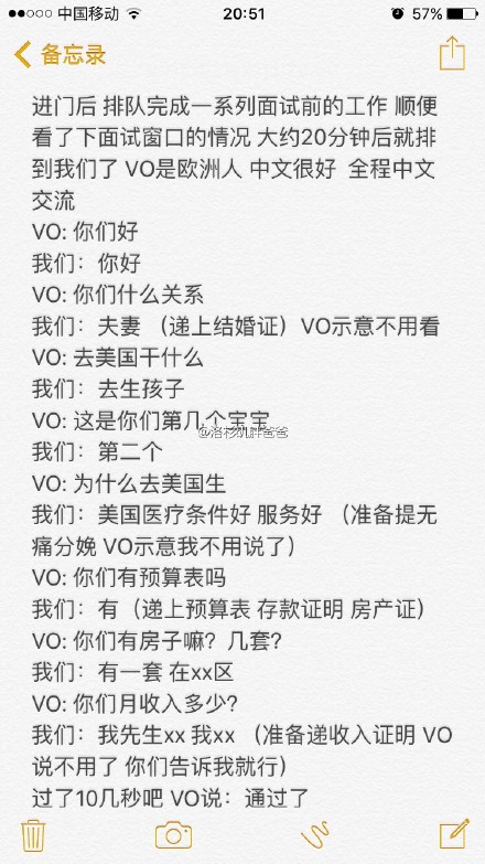 80后上海白领夫妇,赴美生子诚实签面签过程十分顺利,与面签官简短几分钟的交流后,便获得了通过的结果!恭喜!
