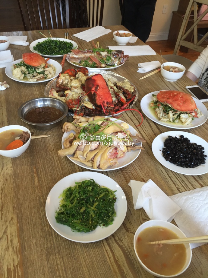 今天,入住在我们美国喜多月子中心尔湾别墅的妈妈们难得聚到一起吃顿饭,大家一般都一起去产检和郊游的机会比较多。所以这次我们的厨师特意亮出自己的看家本领,为大家准备美食,营养美味的海产品、洛杉矶必不可少的海虾海蟹、嫩白爽口的大肥鸡,小青菜的搭档更显营养均衡。妈妈们在一起聊的非常开心,以前姐妹淘聚一起聊得最多的应该是美妆、衣服和包包,现在更能勾起话题欲的应该是奶爸奶妈和美宝吧。