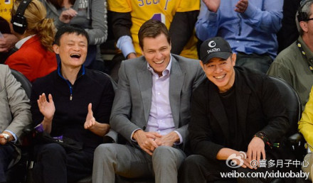 刚刚与苹果CEO库克会面的马云又出现在NBA赛场边,观看洛杉矶湖人队主场对阵休斯顿火箭队。今天是NBA新赛季的首个比赛日,湖人与火箭之争作为焦点战吸引了不少眼球。比赛期间,火箭队中锋霍华德与湖人当家球星科比发生冲突,这对冤家对头也用实际行动向马云证明,你没白来。不光是马云,还有赵薇,李连杰等国内名人坐在台上的观众席上观看了这场精彩的赛事,赵薇还和老公带着孩子一起来到了洛杉矶,看来这场赛事的确吸引了不少人的兴趣,使得大家不远万里的来到现场观看球赛,赴美生子的妈妈们也可以把钟爱NBA的爸爸带来一起看球赛啊,想必这一定是一次非常难得的机会,会为你们的赴美生子之行增添几分乐趣。