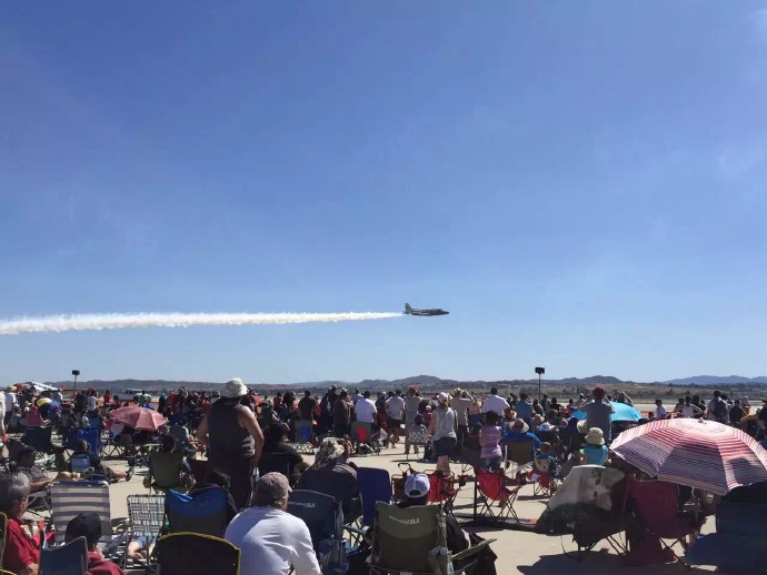 赴美生子难得一遇的就数这空军雷鸟飞行表演,美空军雷鸟飞行表演及亲子活动Air Show in March Air Reserve Base of Riverside.不仅可以观看空军飞行表演,还有机会见识到大名鼎鼎的美国空军雷鸟飞行队(USAF Thunderbird),6架F16战斗机组成的编队,以各种飞行特技划破长空,让人惊叹。