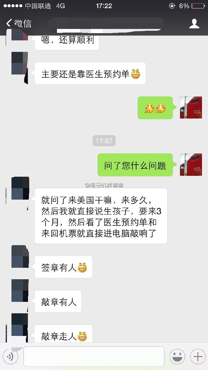 我:对的,我们已经做了充分准备(把手里的资产证明等资料交给面签官)然后告知面签官我们已经预约了美国的医生并预定好三个月的行程。