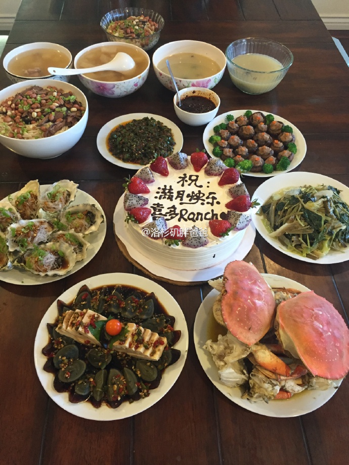 因为喜多的惯例,为了表示对赴美生子妈妈们和宝宝们美好的祝愿以及送别妈妈们完成赴美生子之行回国之前的聚餐,喜多总是会帮助办理满月宴。满月宴通常由龙虾螃蟹等大餐海鲜料理构成,当然最是不能少的要数满月宴的蛋糕,亲人们以美味的蛋糕来表达对宝宝祝愿。尽管满月满月宴的时候奶爸没能亲临现场,但已经在家里准备好一切就等宝宝回国啦。还有戏多rancho分馆的叔叔阿姨们都在这里欢聚一堂共同庆祝宝宝的满月宴。