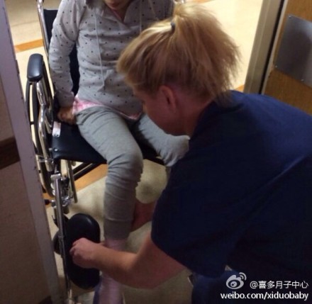 爸爸和医院的护士把宝宝安全的放在了推车中,然后又将妈妈扶到轮椅上,护送到了门口,一家人就这样和医院告了别,一定有很多的不舍,毕竟在这里,妈妈生下来宝宝,成为了最值得纪念的回忆