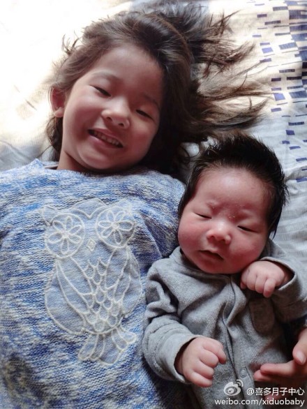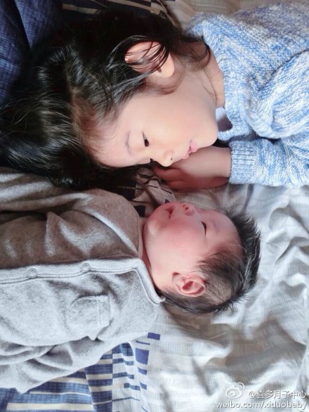 照片里是妈妈的两个宝宝,刚在美国出生二宝和姐姐躺在床上,温馨的对视,看的出姐姐非常喜欢妈妈在美国生下的这个小妹妹,今后就有小伙伴了,真让人开心啊