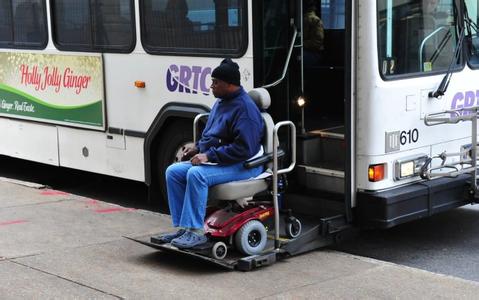 美国的公车最人性化的地方是对老人和残疾人。美国的公车都有一个升降装置,在国内旅行的大巴上才偶尔可以看到。在行动不便的老人或乘轮椅的残疾人需要上公车的时候,司机就会把升降板降到和地面水平,等老人或载有残疾人的轮椅上到升降板上后,司机再把板子升起来,这样老人和残疾人不用费力就可以上公车了。