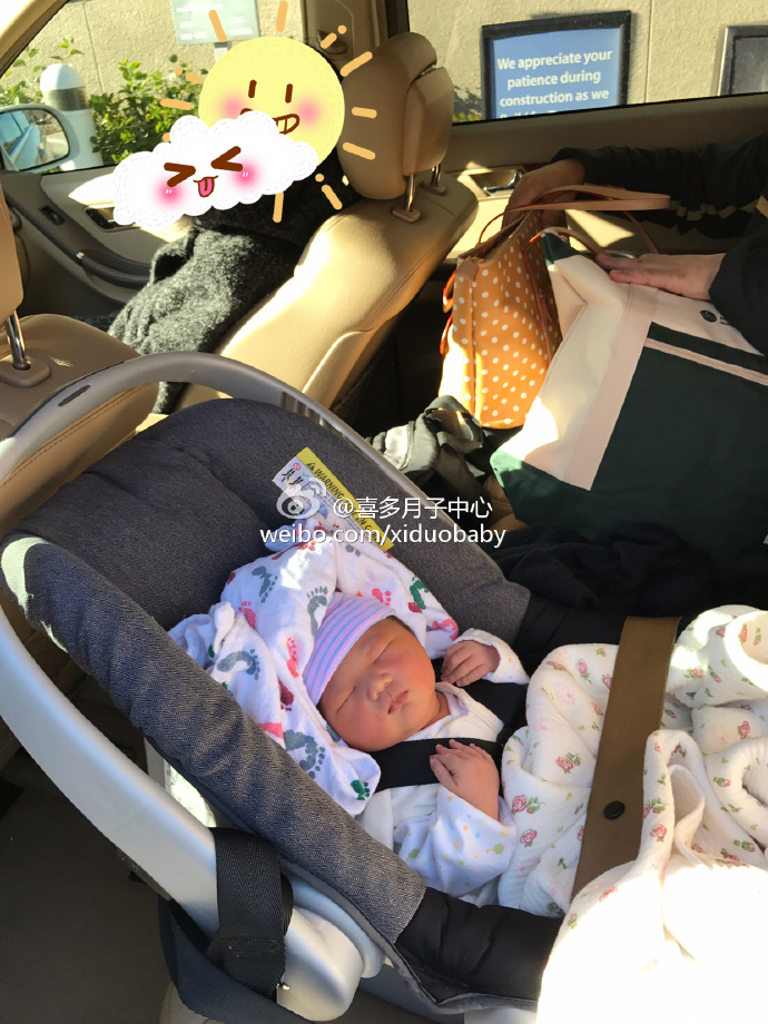 因为宝妈是顺产,所以生完之后没多久就可以出院了,母亲大宝以及我们喜多司机一起前往圣安东尼奥医院医院接回夫妻俩和小美宝。美国是车轮上的国家,出行都需要开车,所以美国政府的相关规定宝宝坐车必须配有婴儿提篮,这也是为了宝宝的安全考虑。