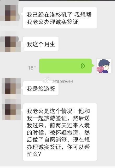 孕妈:我已经在洛杉矶了,我想帮我老公办理诚实签证,我这个月就要生了。