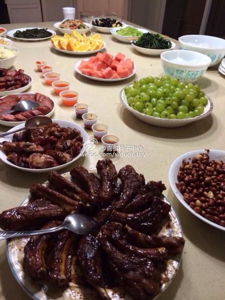 火鸡,大鱼大肉是不可少的,蔬菜水果也是丰富齐全的哦,营养均衡才是重要的嘛哈哈