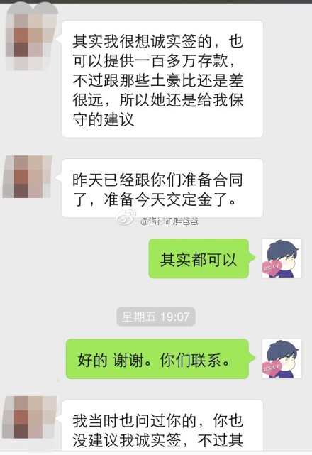 孕妈:其实我很想诚实签的,也可以提供一百多万存款,不过跟那些土豪比还是差很远的,所以她还是给我保守的建议,昨晚已经跟你们准备合同了,准备今天交定金了。