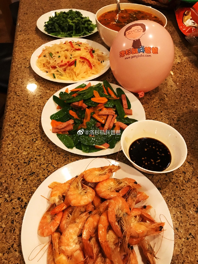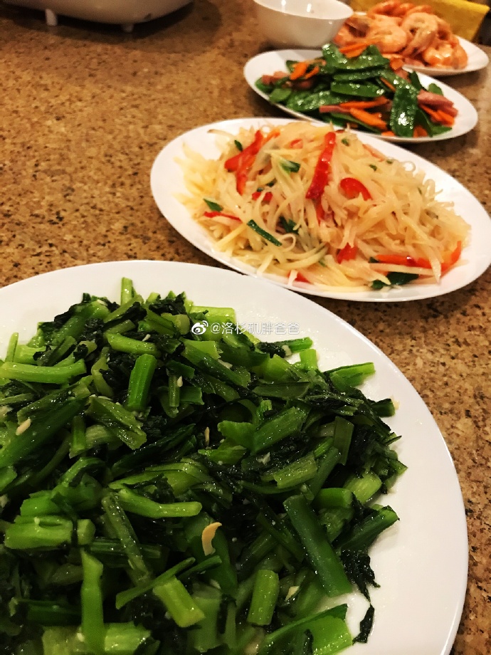 今天阿姨有准备基围虾、青菜、土豆丝、炒豌豆